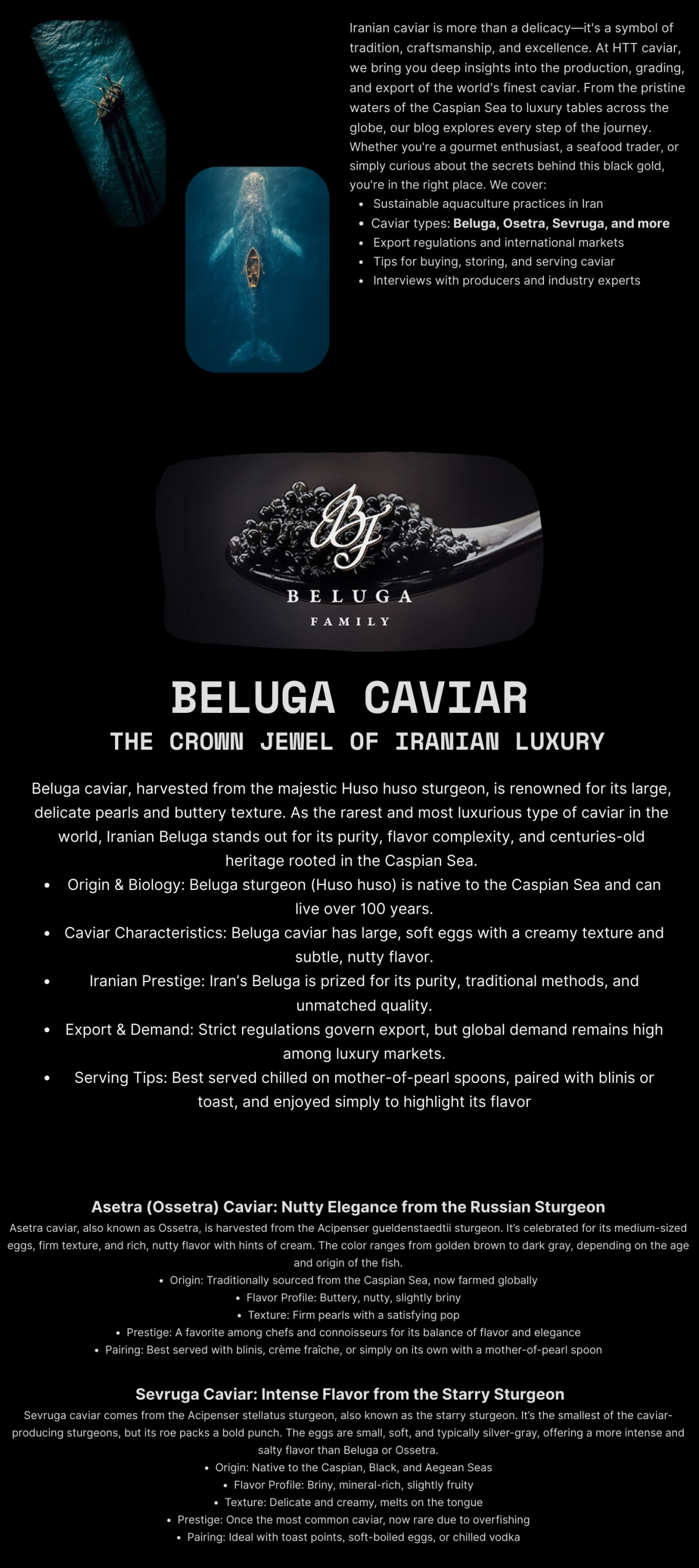 We offer premium varieties such as Beluga, Asetra, and Siberian, each known for its delicate texture, rich flavor, and luxurious presentation.
